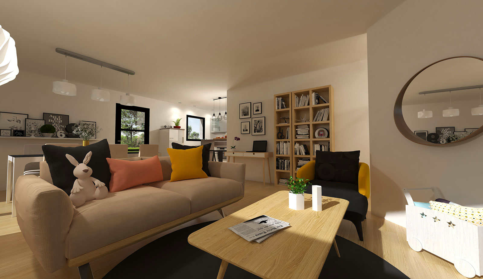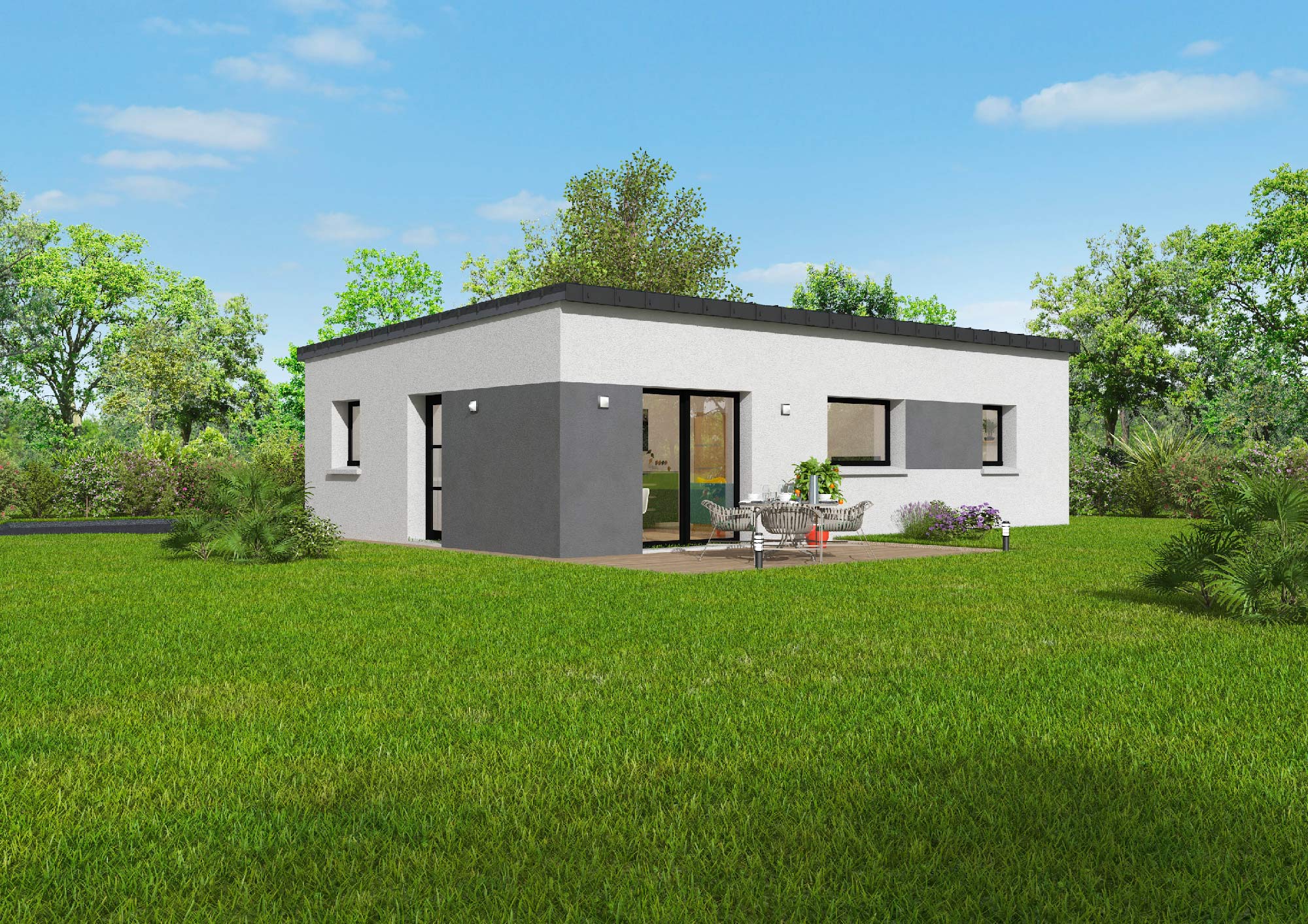 La maison de plain-pied « Even-Hom » est un modèle qui existe en toit plat et en ardoise 2 pentes. Son aménagement vous permettra de circuler naturellement dans toutes les pièces. Elle se compose d’une belle pièce de vie ouverte et lumineuse avec un coin salon et un coin cuisine/repas, une buanderie, mais également un coin nuit pouvant accueillir 2 ou 3 chambres, un sanitaire et une salle de bain. Cette fluidité d’aménagements est l’atout majeur de cette maison !